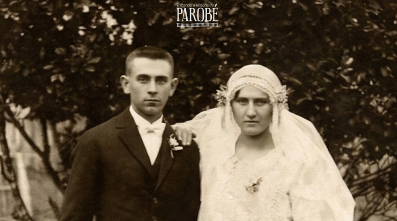 Em foto da década de 1920, temos os noivos Vicente Gallas e Irma Hennemann, cujo casamento foi realizado em 1º